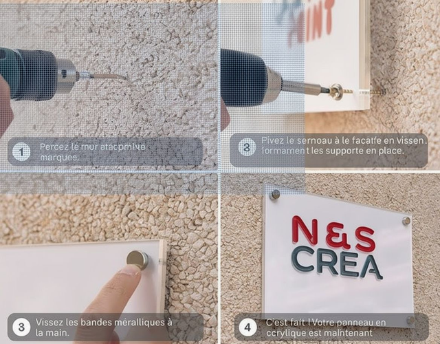 Présentation professionnelle et élégante Plaque en plexiglas transparent avec système à double plaque et fixation par entretoises, idéale pour mettre en valeur documents, photos ou signalétique murale.